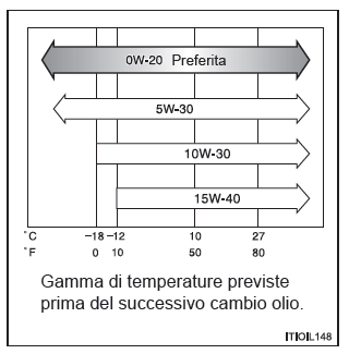 Se si utilizza un olio motore con viscosità SAE 10W-30 o superiore in presenza di temperature estremamente basse potrebbero verificarsi problemi di avviamento. Si raccomanda pertanto l'utilizzo dell'olio motore SAE 0W-20 o 5W-30.