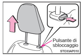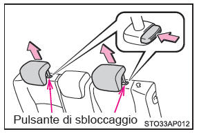 Spingere il poggiatesta verso il basso mentre si preme il pulsante di sbloccaggio.