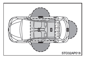 ■ Portata effettiva (zone all'interno delle quali la chiave elettronica viene rilevata)